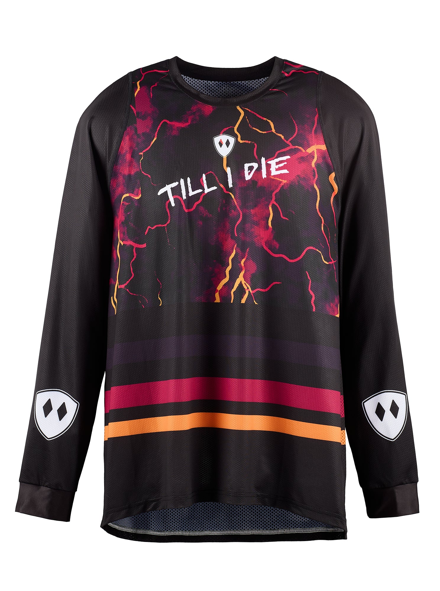 The Nightstrike MTB Jersey is electric. With deep color tones and radiant lightening-inspired graphics, this jersey is made to stand out on every trail. Lightweight, sweat-wicking, and built with breathable fabric and UV protection, it delivers all-day comfort with high-voltage style. Whether you're climbing through shadows or dropping in at golden hour, Nightstrike brings the charge.