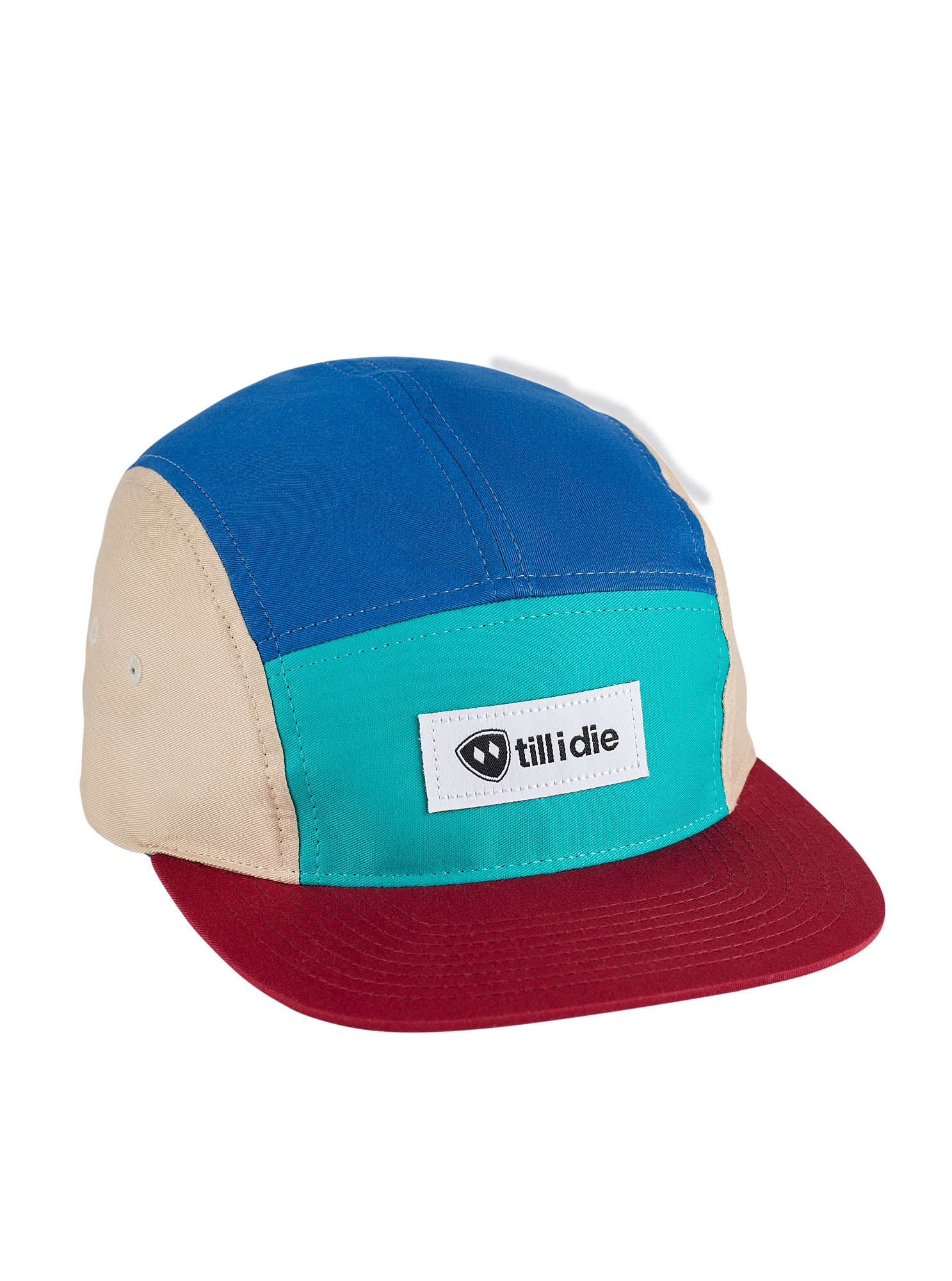Built for the long haul and the laid-back hangs. The Outpost Camp Hat brings earthy tones and effortless style to our classic 5-panel silhouette. Featuring blue, teal, tan, and brick cotton twill panels with a stitched Till I Die woven label on the front, this lid is equal parts utility and vibe.