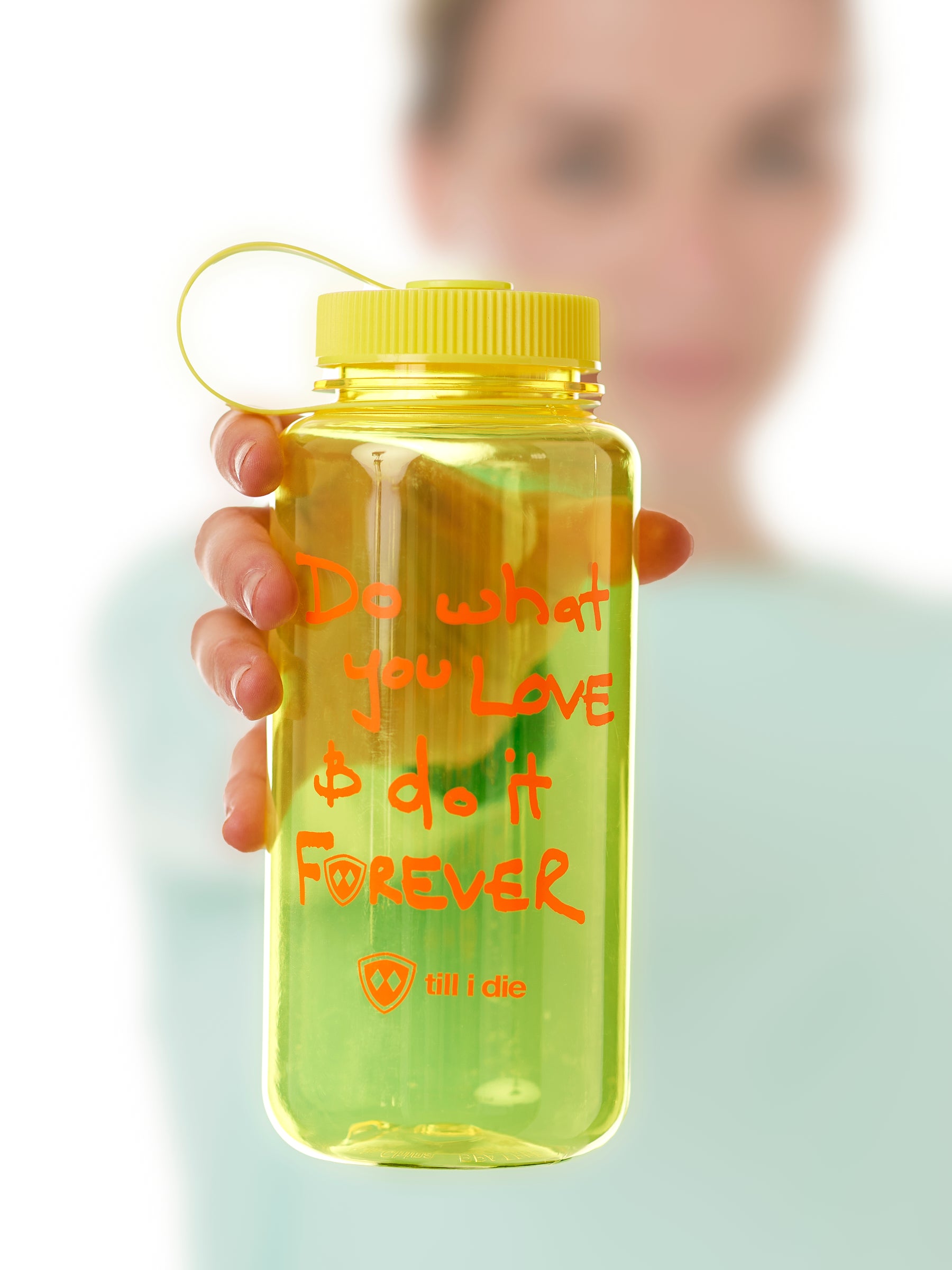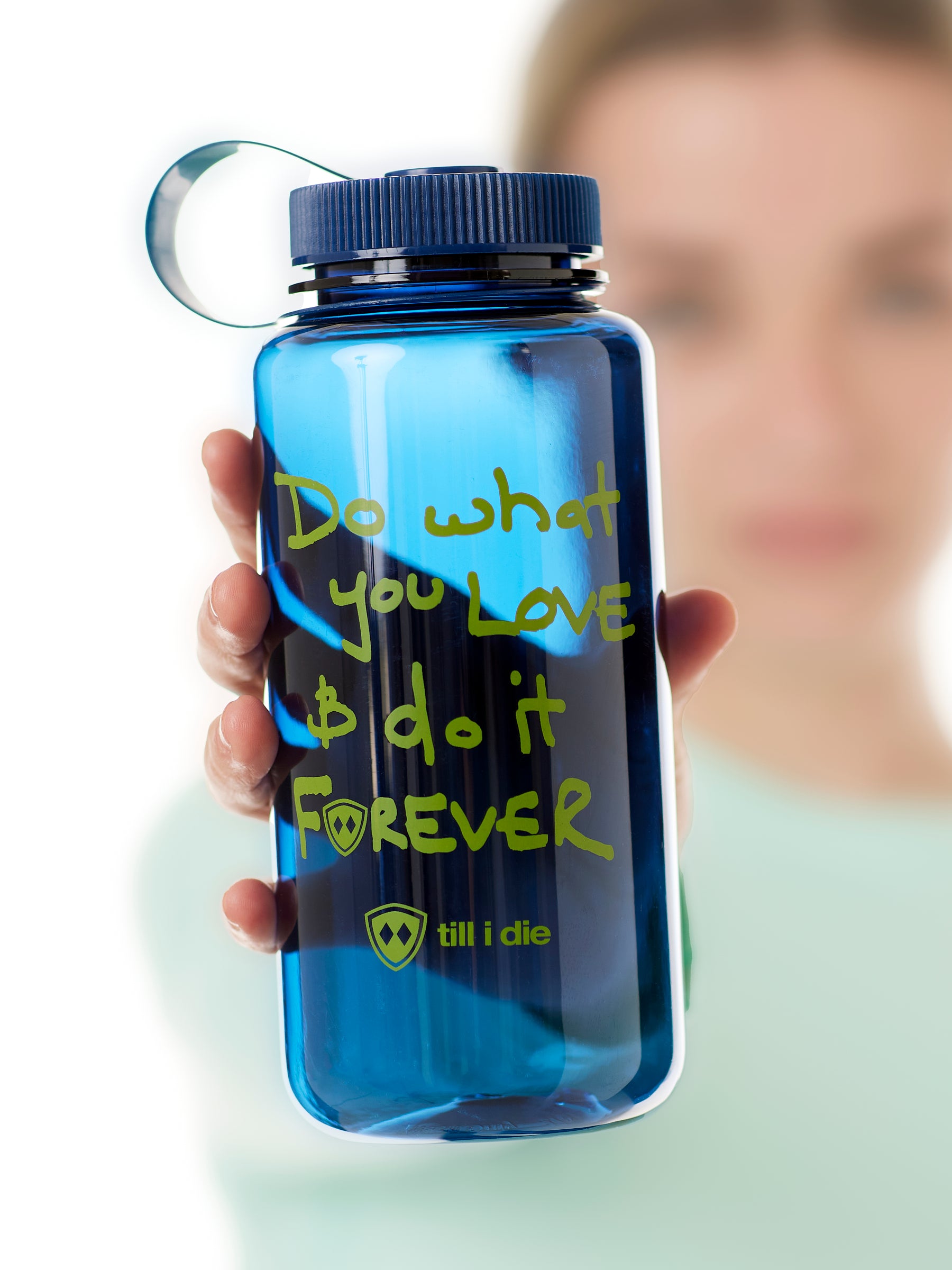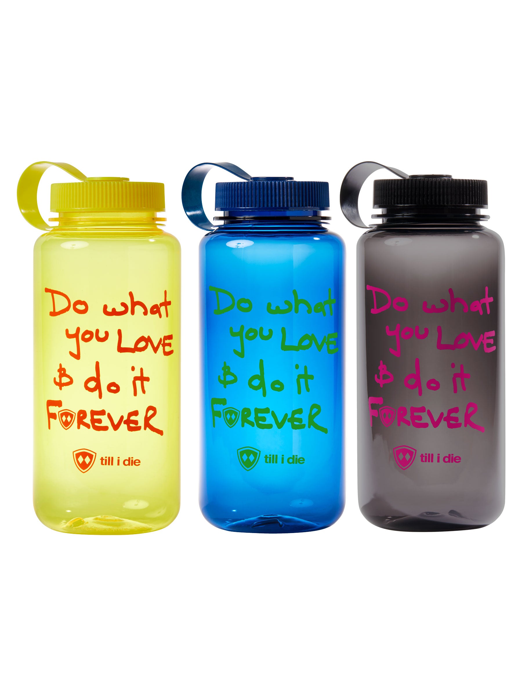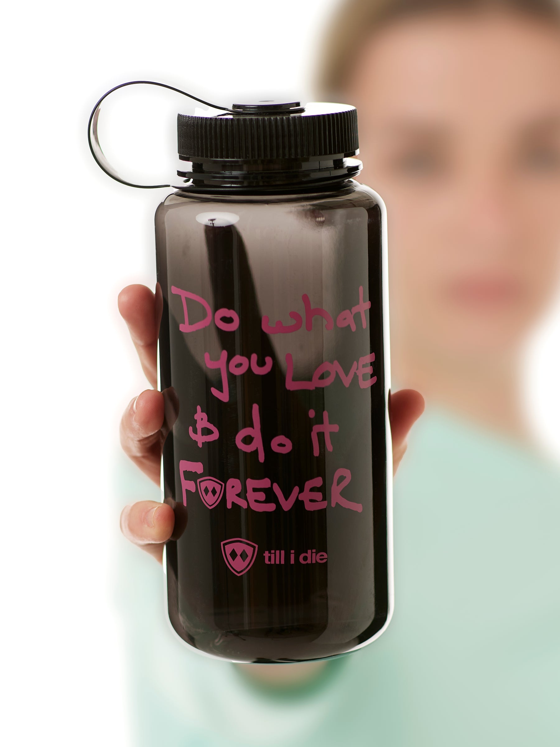Unveiling our reusable, eco-friendly canvas: Till I Die's signature Do What You Love Do It Forever® design, penned by hand as a heartfelt love note from us to you. But here's the twist – we've left ample space for you to deck it out with more stickers, allowing your personality to shine through every addition. Our commitment echoes yours—we're dedicated to reducing, reusing, and recycling, making sustainability our pledge. Embrace this as a statement of your values while showcasing your unique flair. Join us in the movement towards sustainability with Till I Die's reusable water bottle—an embodiment of style, personality, and eco-consciousness.