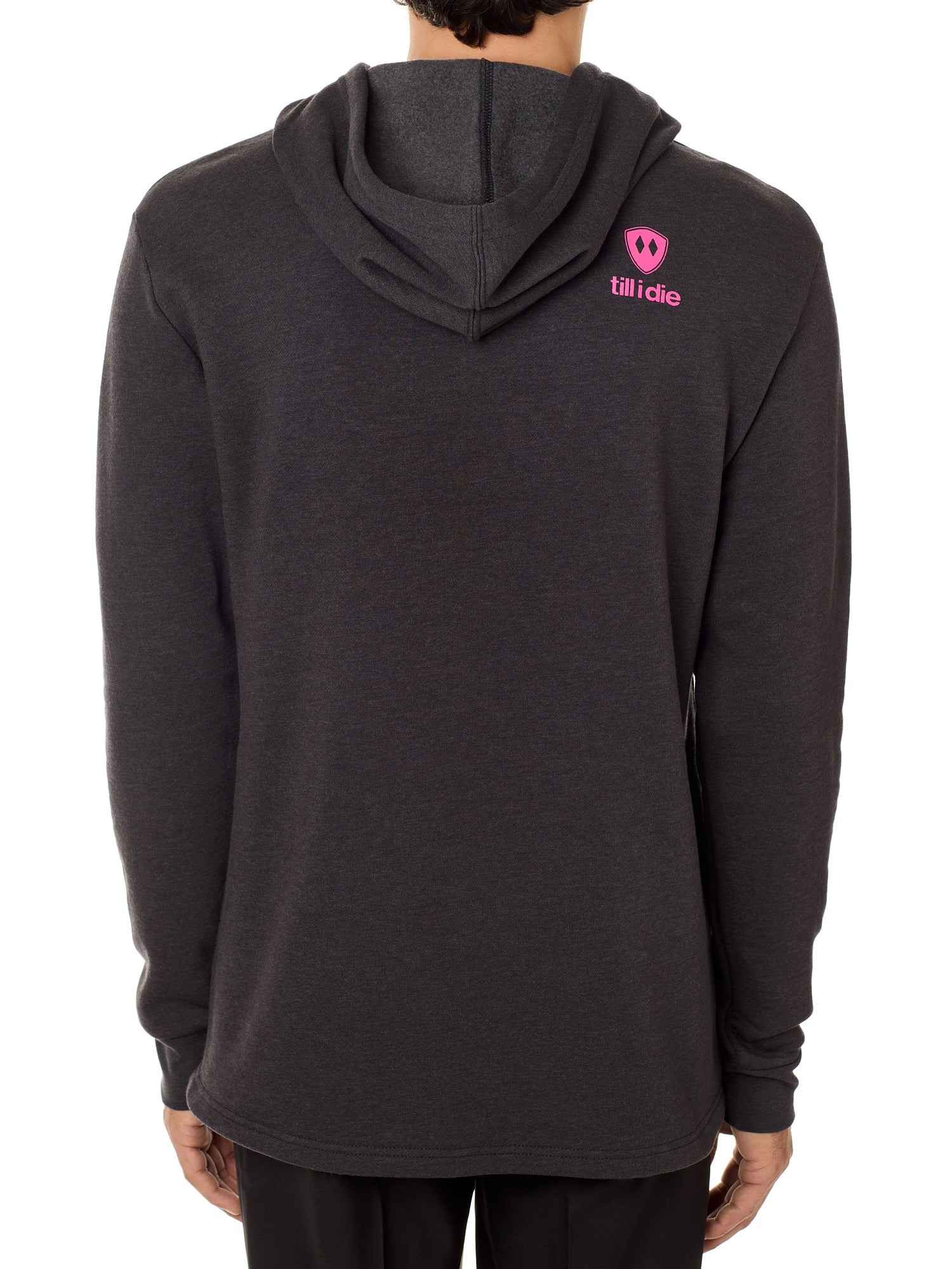 Raise a glass to après-ski vibes with our Shot Ski Hoodie, designed for those who take the celebration as seriously as the slopes. Featuring bold, vibrant shot ski graphics along the hood and a Till I Die logo on the back right shoulder, this hoodie is a shoutout to the good times that follow a day on the mountain.