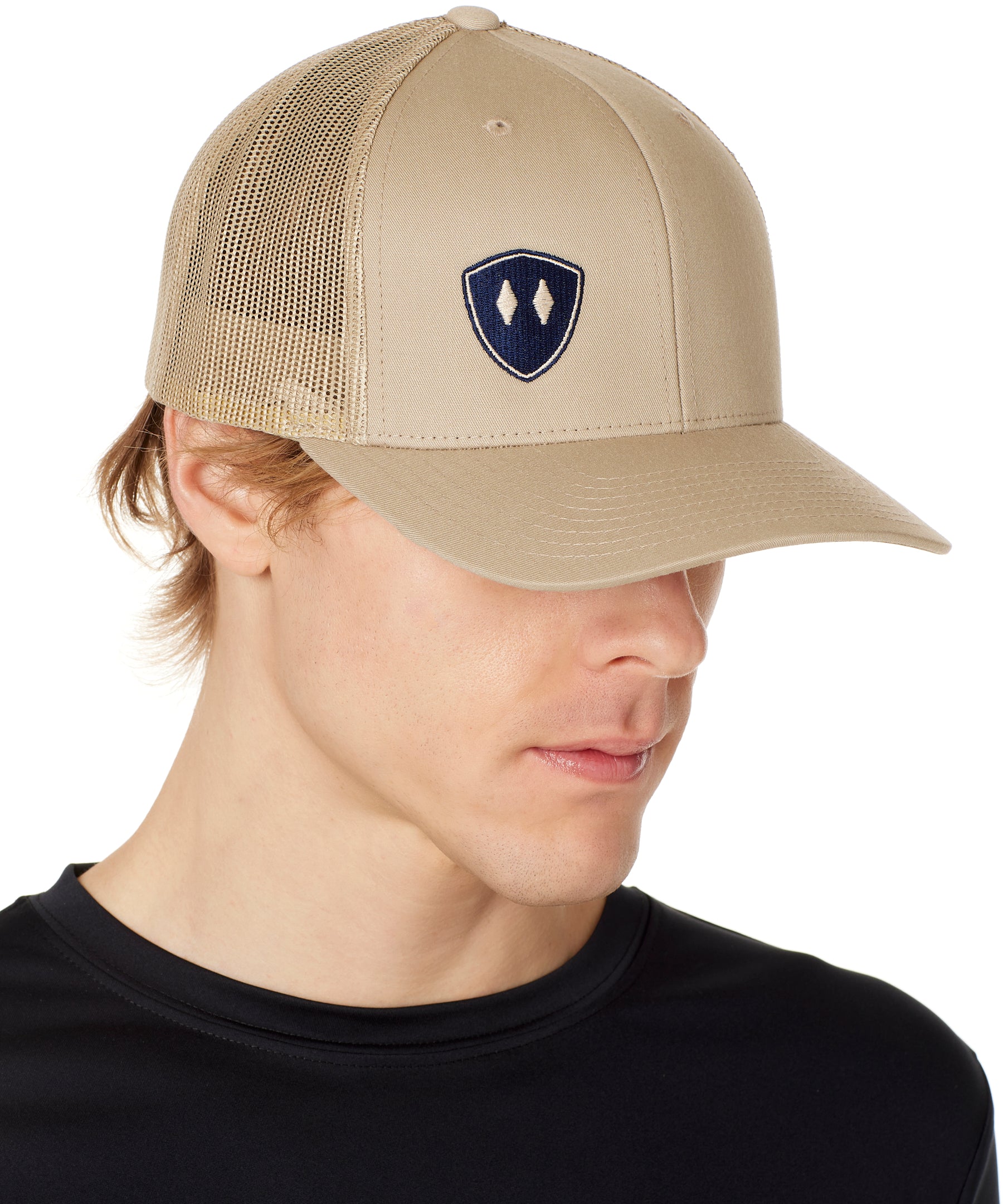 Till I Die® Shield // Classic Trucker Hat // Tan + Navy
