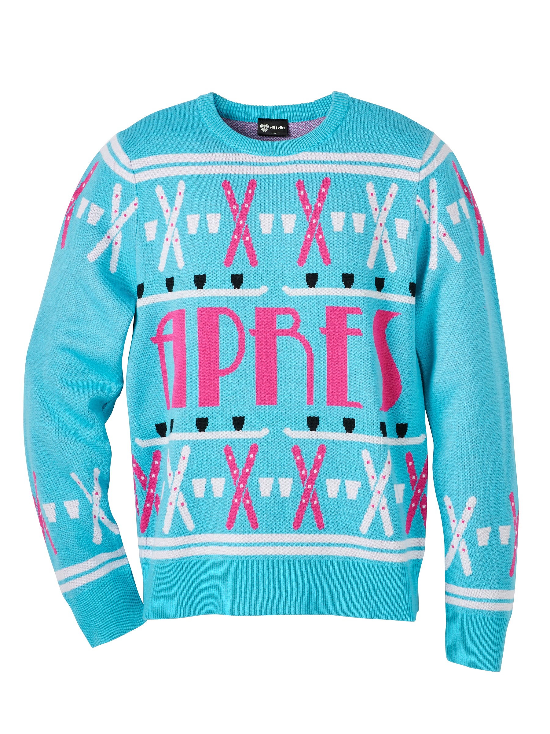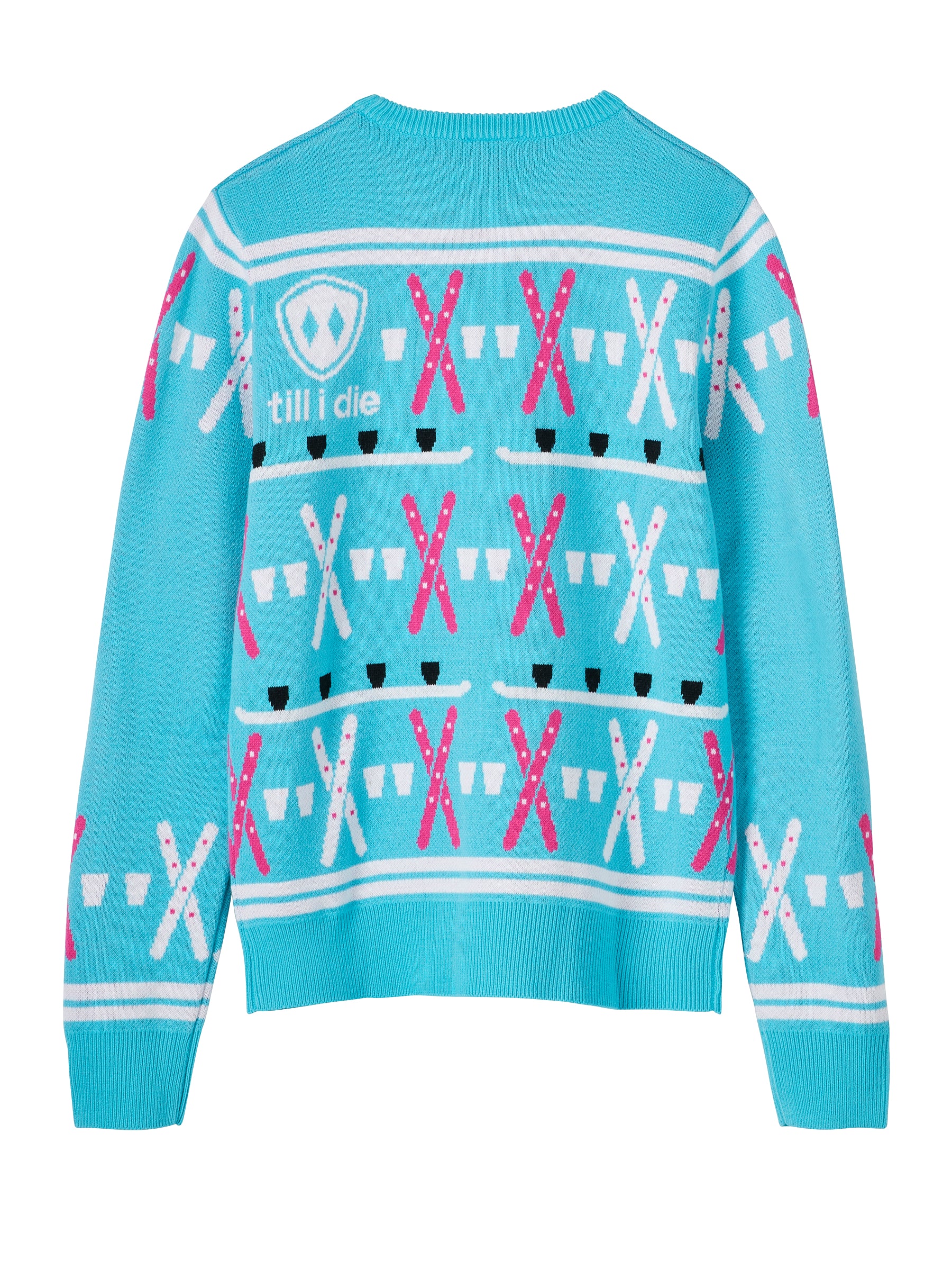 Unleash the party vibes with Till I Die's sweater showcasing the legendary shot ski! This cozy knit embodies après-ski fun and bold style. Get ready to turn heads and stir up the slopes in this conversation starting, statement piece. Elevate your look and embrace the thrill of the mountain scene!