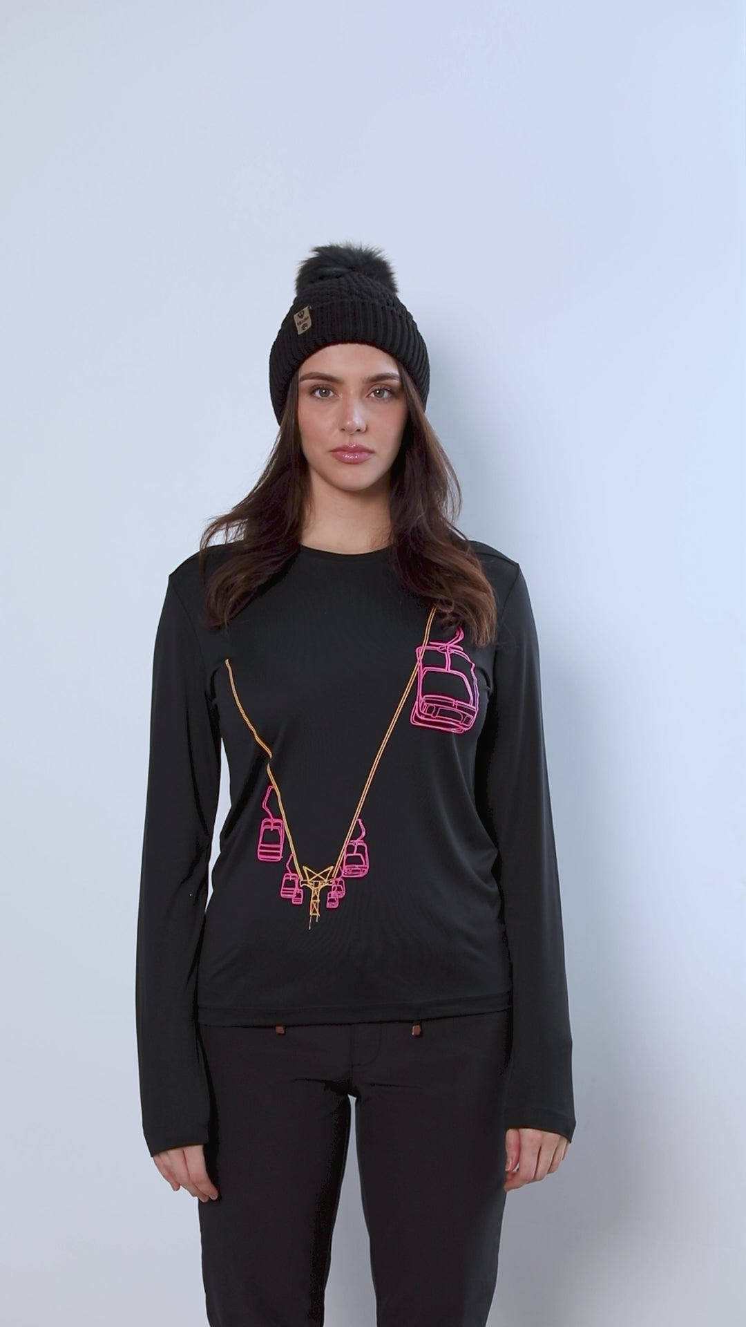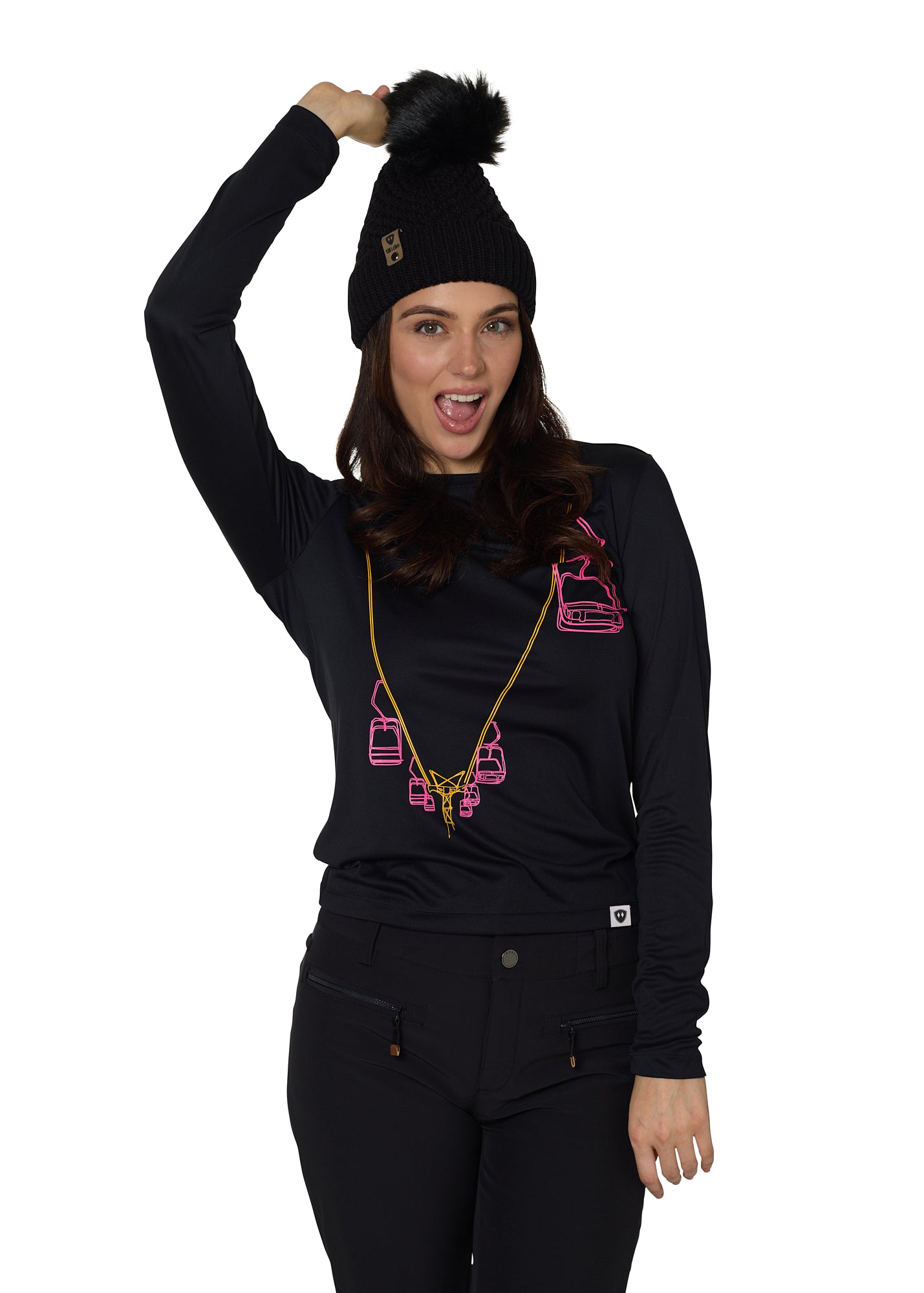 Stack laps in style. The Chairlift Performance Long Sleeve is a nod to the first chair diehards who line up no matter the conditions-featuring a bold neon orange and pink Chairlift graphic that pops like a winter sunrise.
